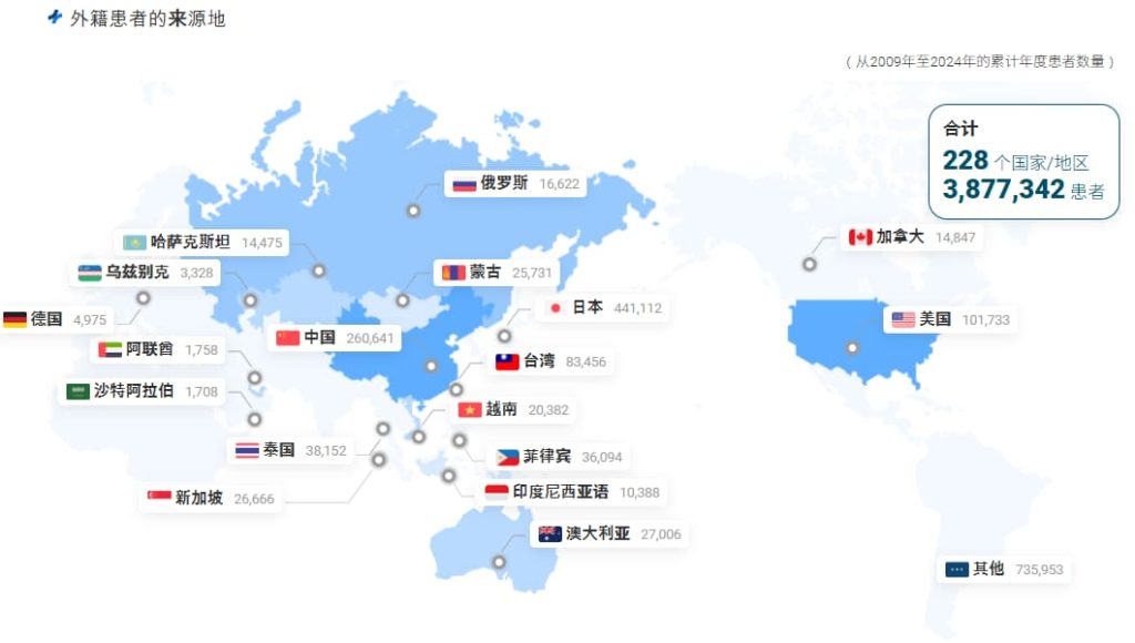 这种医疗水平吸引了世界各地患者慕名而来——仅在2024年,就有来自202个国家的约117万名外国患者赴韩就医,涵盖健康体检、重大疾病治疗、康复等多种需求。