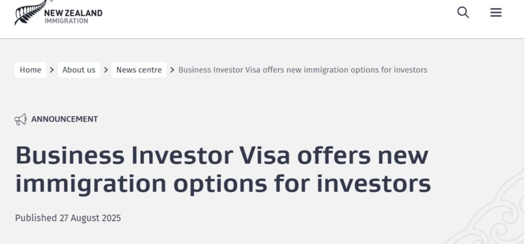 8月27日,新西兰政府宣布重大移民政策改革,关闭企业家工作签证,推出全新的商业投资者工作签证(Business Investor Visa, BIV),旨在吸引全球高质量投资者,促进经济增长。新签证将于2025年11月开放申请,提供两条路径:投资200万纽币可12个月获居留权,投资100万纽币则3年后获居留资格。申请人需投资现有企业或收购至少25%股权,满足语言(雅思5.0)、年龄(55岁以下)等要求,并需证明50万纽币安家资金及商业经验。