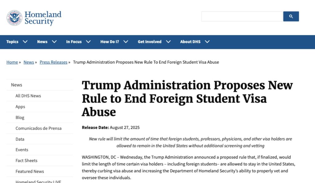 2025年8月27日,特朗普政府宣布拟议新规,计划收紧外国学生及部分签证持有者的停留期限。根据草案,F类留学生和J类交流访问者的授权期限将限定为所参与项目时间,不超过4年;I类外国媒体签证初始期限240天,可申请延期但不得超过任务期限。新规要求申请人到期前必须向美国移民局(USCIS)申请续期,以便国土安全部加强监管。此举被视为对1978年以来“身份有效期”(D/S)制度的重大调整,旨在防止长期滞留与签证滥用。目前草案已进入征求意见阶段。在政策收紧背景下,规避风险的途径是尽早取得美国长期身份。美国EB5新政凭借预留签证免排期和双递交机制的双重优势,助力留学生快速获得小绿卡,助力合法留美。