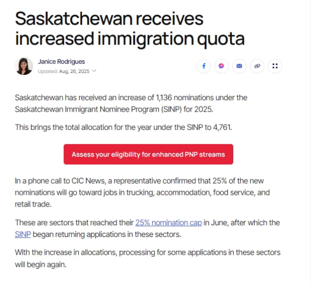 2025年8月26日消息,萨省省提名计划(SINP)获批额外 1,136 个名额,总配额升至 4,761,但新增名额多用于特定行业且大部分要求申请人已在加拿大境内,整体条件依然严格;相比之下,阿尔伯塔省企业家移民项目门槛更具弹性,更适合具备创业或投资计划的加拿大移民申请人。