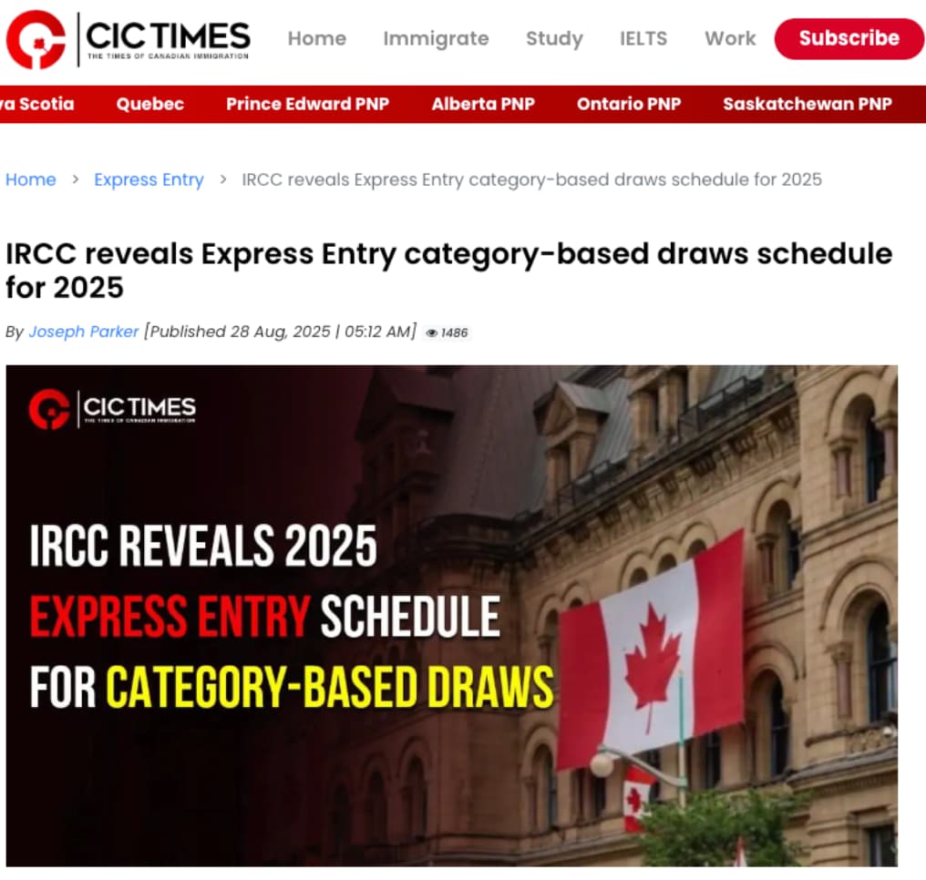 【加拿大】IRCC公布2025快速通道类别抽签六轮安排,技能类别申请人可提前规划