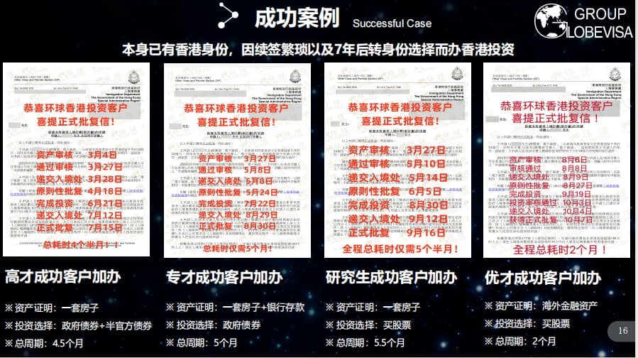 环球较快的客户案例从递交申请到获得正式批复就只要1个半月,慢的也就8个半月。远远比筛选制度的计划拿到身份要快速!