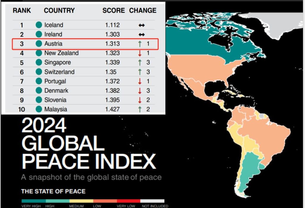 奥地利在全球和平指数中排名第3,犯罪率仅为欧盟平均水平的一半。森林覆盖率47%,空气质量优良率超95%。