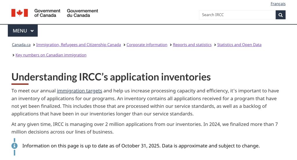 据加拿大移民、难民及公民部(IRCC)官网于 2025 年 12 月 16 日 更新的官方统计数据,截至 2025 年 10 月 31 日,IRCC 正在同时管理超过 218 万份尚未结案的各类移民与签证申请,涵盖永久居民、临时居民及公民身份申请等多个类别。