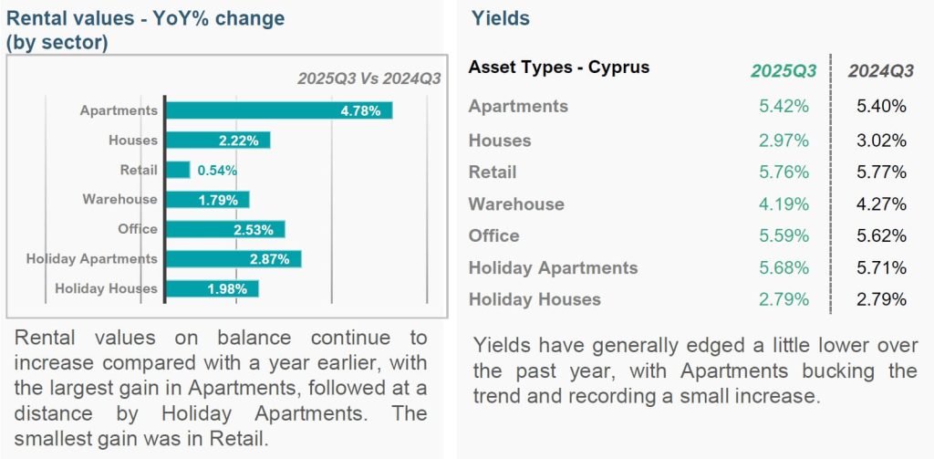 更令人振奋的是租金回报率(Yields)。在目前全球主要城市租金回报率普遍低于3%的情况下,塞浦路斯交出了一份亮眼的成绩单:
