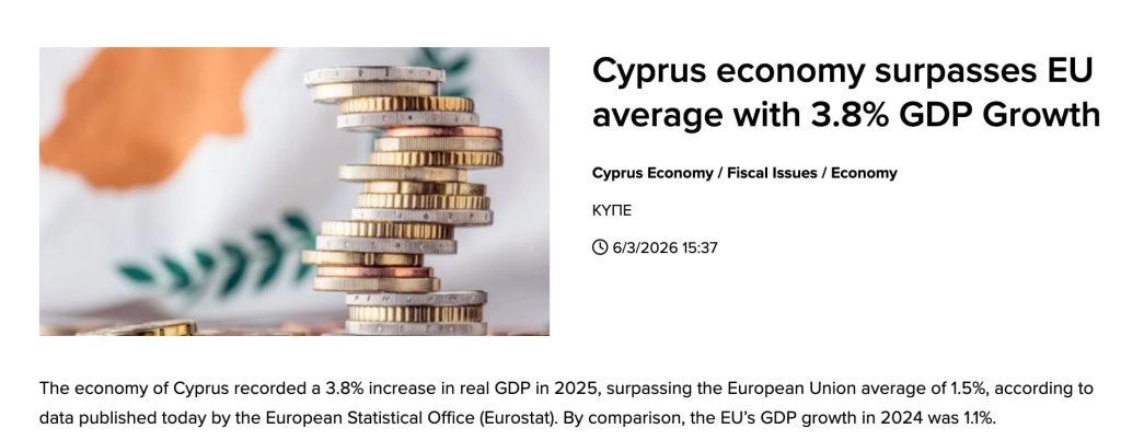 来源链接:https://www.stockwatch.com.cy/en/news/cyprus-economy-surpasses-eu-average-with-38-gdp-growth#:~:text=Cyprus%20Economy%20Cyprus%20economy%20surpasses,and%20Hungary%20(+0.4%25).