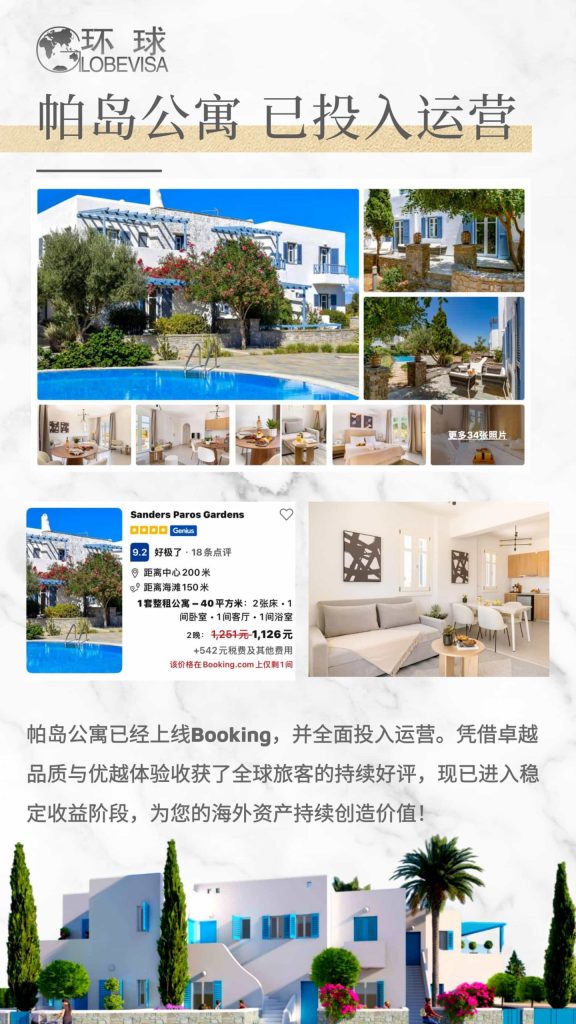 环球专属项目帕罗斯岛花园已成功投入运营。上线Booking后预定火爆,好评如潮。项目现已成功进入相对稳健的回报阶段,凭借卓越的市场表现,正为您的海外资产持续创造可观价值。