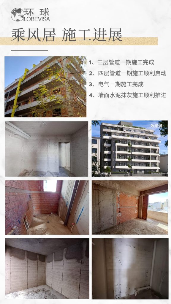 1-4 层:干墙安装、墙缝处理、电气系统初装均已完成;2-4 层给排水管道初装已完成,1 层正在收尾。