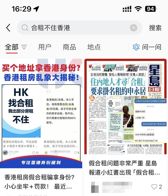 近日,某社交媒体平台涌现大量“香港挂名租约、不实际居住来申请香港永久性居民”的内容。与此同时,也有不少通过各种入境计划获得香港身份的申请人,在平台上发帖求助,希望香港房东,或是在港已有租房的居民,以较低的价格分租出一个房间,用作地址证明和居住证明。