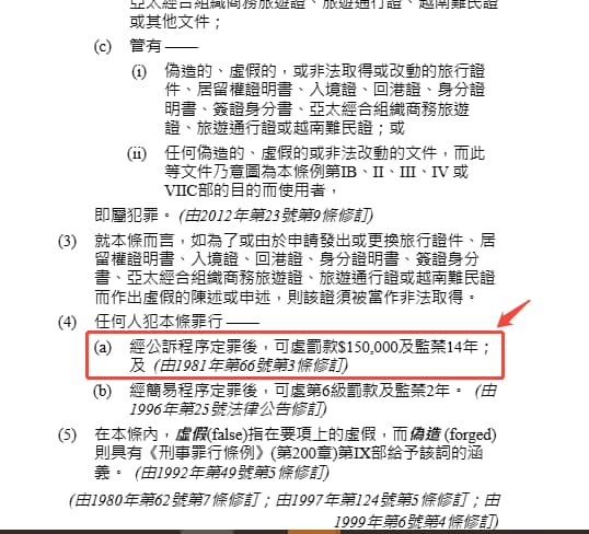 香港入境处官方则表示:若任何人士在提交申请时,明知而故意申报失实或填报虚假资料,即属违法。一经证实,即使相关人士已取得香港居留权亦会依法予以取消及遣返。若证实有人用非法手段,获取来港或延期逗留的签证或进入许可,也可依法宣布无效,并遣返原居地,包括已取得香港居留权者,一经定罪至高可判罚15万港元和入狱14年。