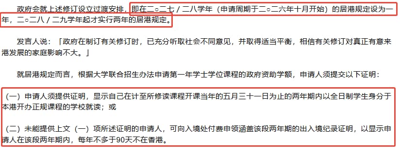 2、在2026年10月后申请2027-2028学年的香港的大学(专上、副学士、本科)需要查看过去至少居港1年才可以算作本地生。