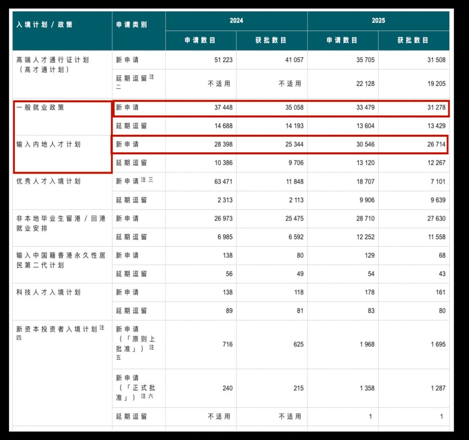 与此同时,官方数据显示,专才计划的新申请获批率保持高位——一般就业政策(针对外籍申请人)获批率达93.5%,输入内地人才计划(针对内地申请人)获批率达87.5%。专才计划凭借清晰的申请条件和稳定的获批率,成为当前香港身份规划中更具确定性的选择。