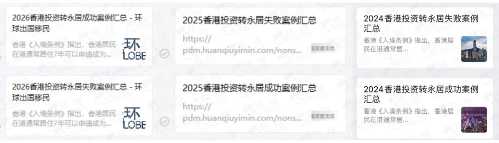 环球出国经营香港项目近20年,服务接近超过4万名不同申请方式的香港身份申请人,环球出国团队就是恰恰能给申请人提供海量经验,并且是专业且全面申请经验的服务机构,如果您现在也正准备申请永居,也需要看海量案例,不妨联系环球出国。环球出国有专门总结了2024年全年的申请永居和失败案例,也有2025年全年的申请永居和失败案例和2026年开申请至今的申请成功和失败的案例: