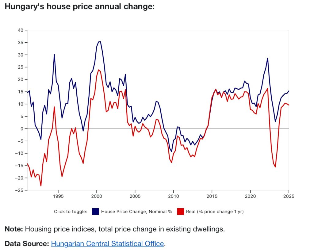 根据全球房地产权威数据机构Global Property Guide (GPG) 在2025年8月发布的新报告(该报告汇总了匈牙利国家银行 MNB 和核心统计局 KSH 的官方数据):