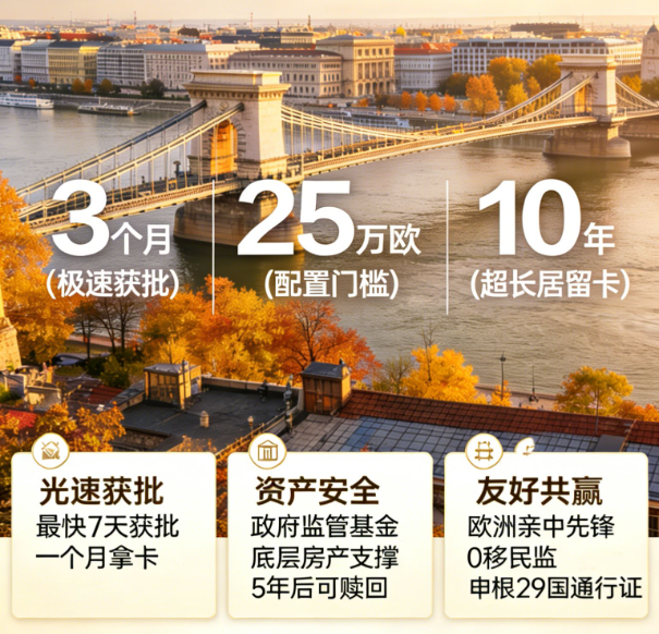 在政策多变的2026年,多等一天,就多一分政策变动的风险。得益于环球出国在匈牙利长达13年的深耕,客户最快约3个月即可获批。在风向标转动前,为您和家人落袋为安,即刻开启申根29国免签的通行证。