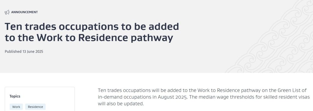 同时技术移民工资中位数上调至$33.56纽币/时(原先为$31.61纽币/小时),进一步强化“高技能、高薪资”的筛选逻辑,向世界展现了新西兰的经济复苏导向。
