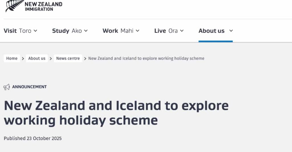 新西兰移民局(Immigration New Zealand )于 2025 年10 月23 日宣布,正与冰岛探讨建立相互的打工度假(working holiday)协议。此方案若敲定,将允许两国的年轻人前往对方国家旅行、工作与学习,以促进文化交流及人员往来。冰岛自 1973 年起即为新西兰的免签国家,此次合作将建立在两国长期友好关系的基础之上。