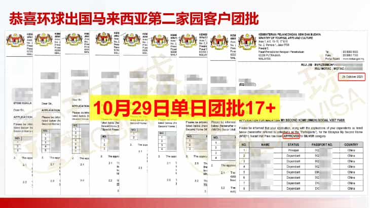 环球出国马来西亚第二家园团批喜讯,10月29日,单日成功获批17+申请,实现递交至批复平均2个月,最快仅1个月,全家三代多至八口轻松获身份!环球出国马来西亚项目,拥有14年+经验,成功率超99%!