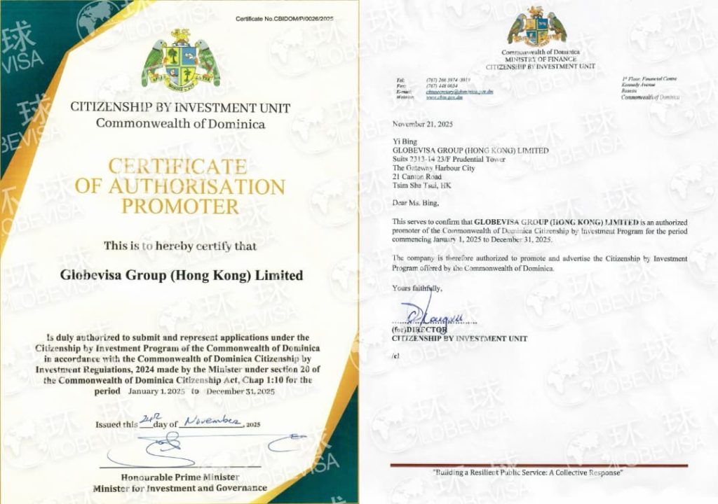 环球出国荣膺多米尼克移民局官方授权代理资质,2024-2025 年连续两年稳定持牌合规运营,更是国内首个斩获该官方资质的专业移民机构!依托移民局权威背书,环球出国始终以合规为核心底线,构建全流程安全服务体系,从申请评估、文件精审到获批落地,每一环均由资深团队专业把控。