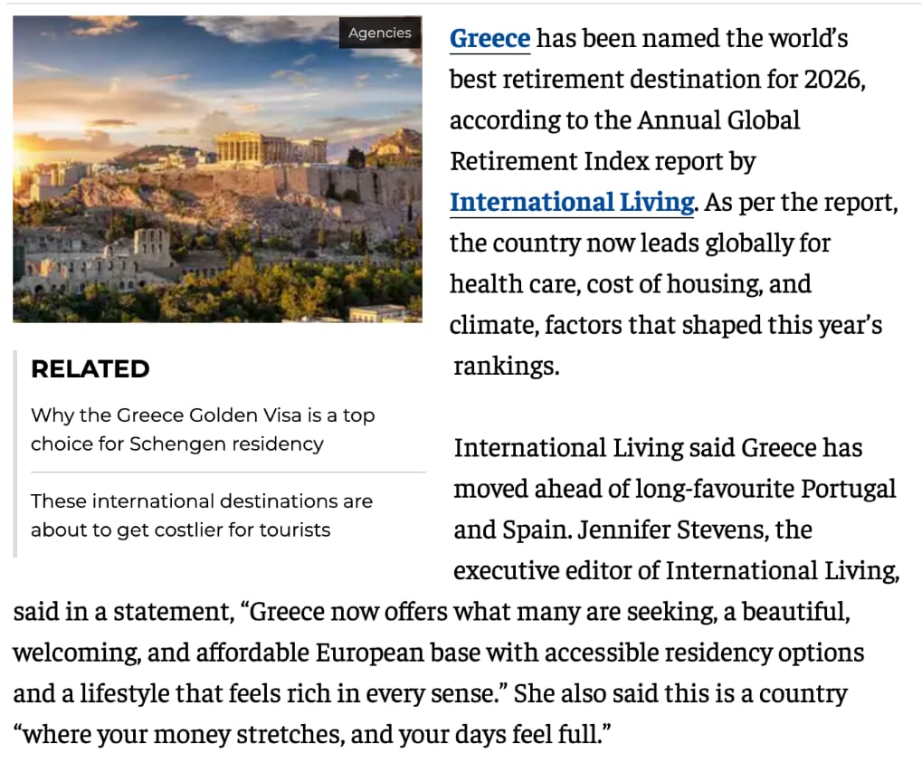 【希腊】希腊荣膺2026全球退休目的地榜首
