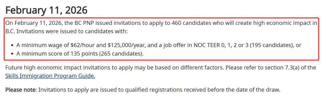 加拿大两大核心省份同步释放积极政策信号。BC省省提名近日连续两周针对“高经济影响力”类别发出889份邀请,最新抽选分数降至135分,时薪门槛下调至62加元,筛选标准明显放宽。该趋势与ICT跨国企业内部派遣类别高度契合,为企业高管及专业人才争取省提名创造更有利窗口。