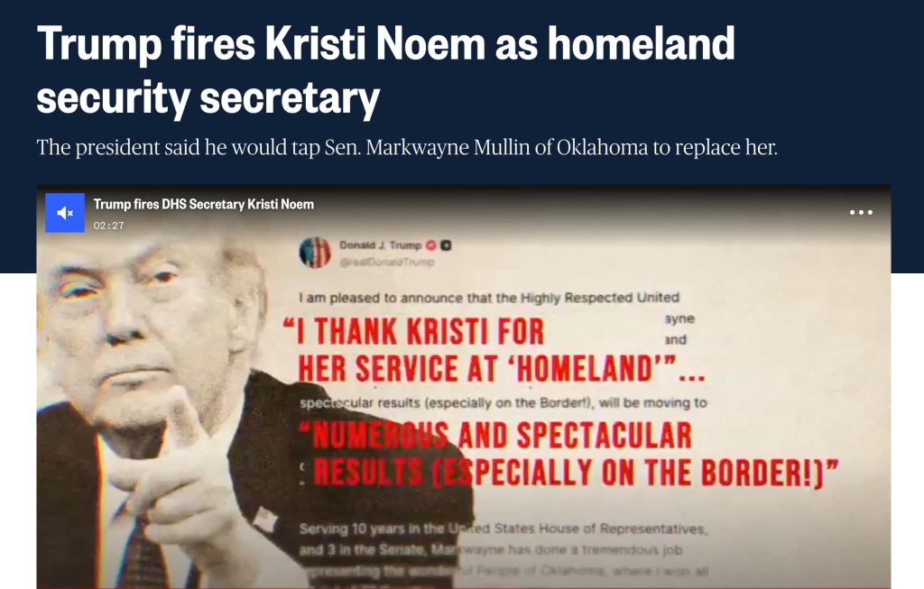 来源:https://www.nbcnews.com/politics/trump-administration/trump-says-kristi-noem-stepping-homeland-security-secretary-rcna248719