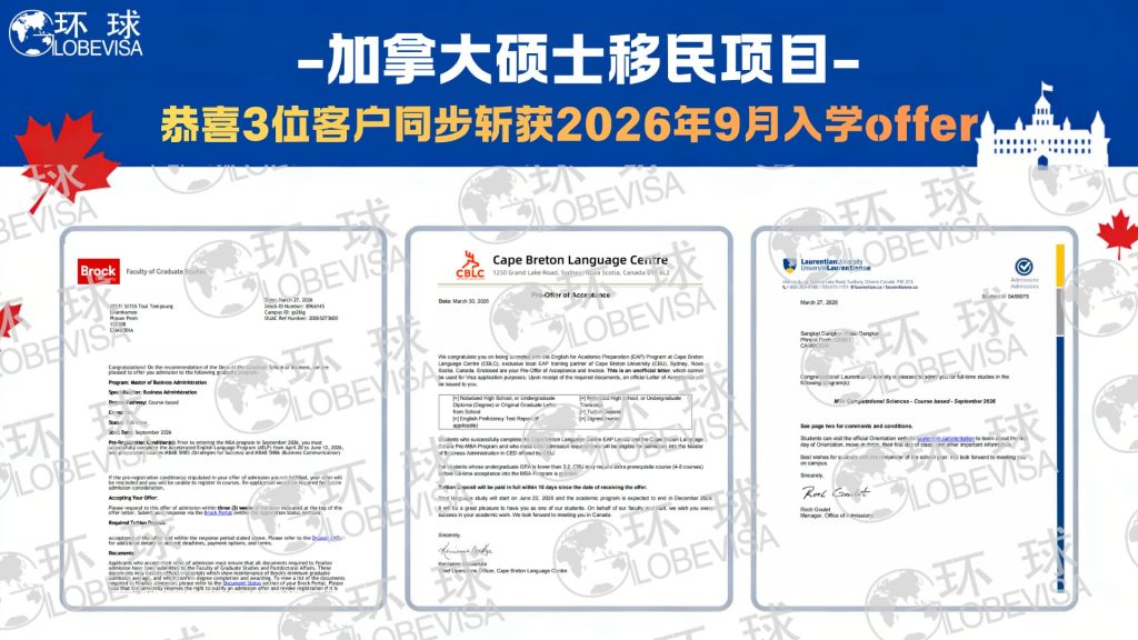 环球出国加拿大硕士本周收到多封offer, 同时2026年3月31日,加拿大EE-CEC抽签一次性发放2250份邀请,509分;3月30日,省提名类别邀请356份申请,802分;加拿大境内经验成为核心优势!