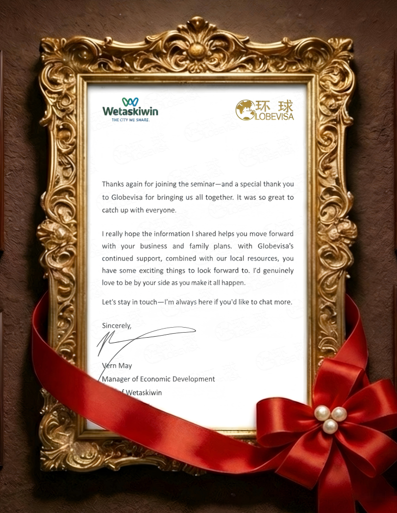 信中特意致谢了到场客户、认可环球搭建的优质移民桥梁,后续还会联动本地政府资源,为环球出国的申请人全程护航!助力每一位申请人实现家庭安居与事业拓展的双重规划!