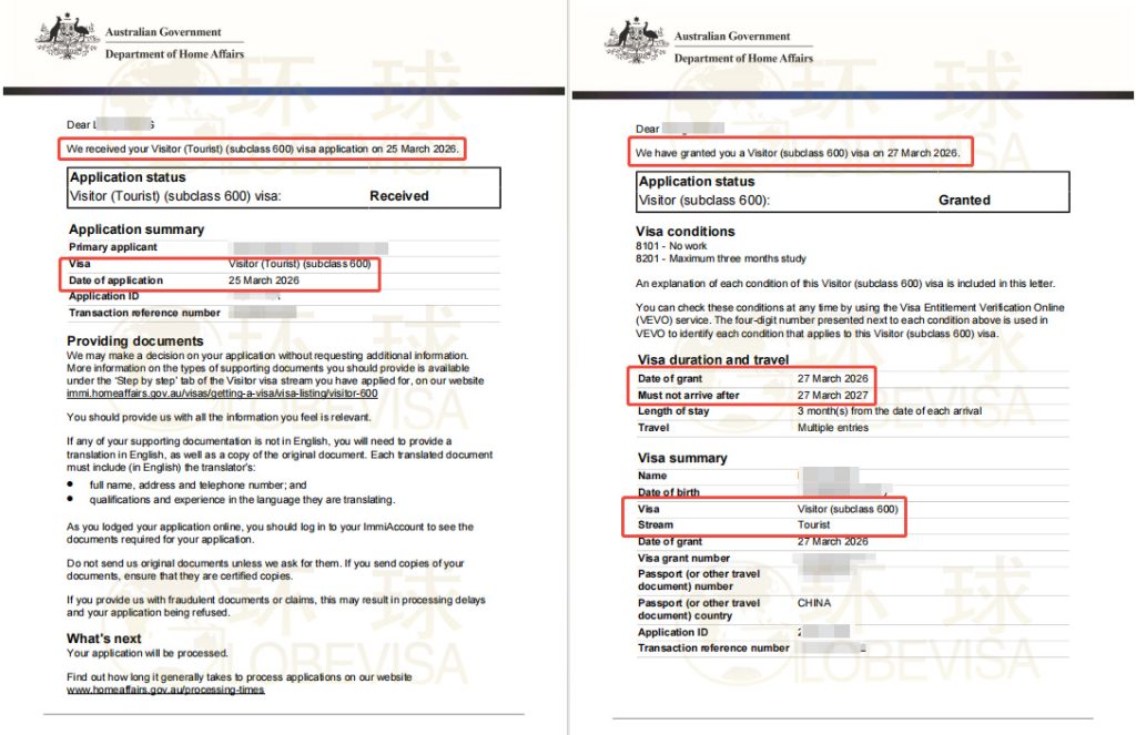 在新政实施后,环球出国迎来获批捷报:一组澳洲600访问签证申请于3月25日递交,3月27日获批,仅用3个工作日完成审批,显著快于官方目标周期。业内人士指出,新算法下材料达到“Decision-Ready(决策就绪)”标准,将成为快速获批的关键。