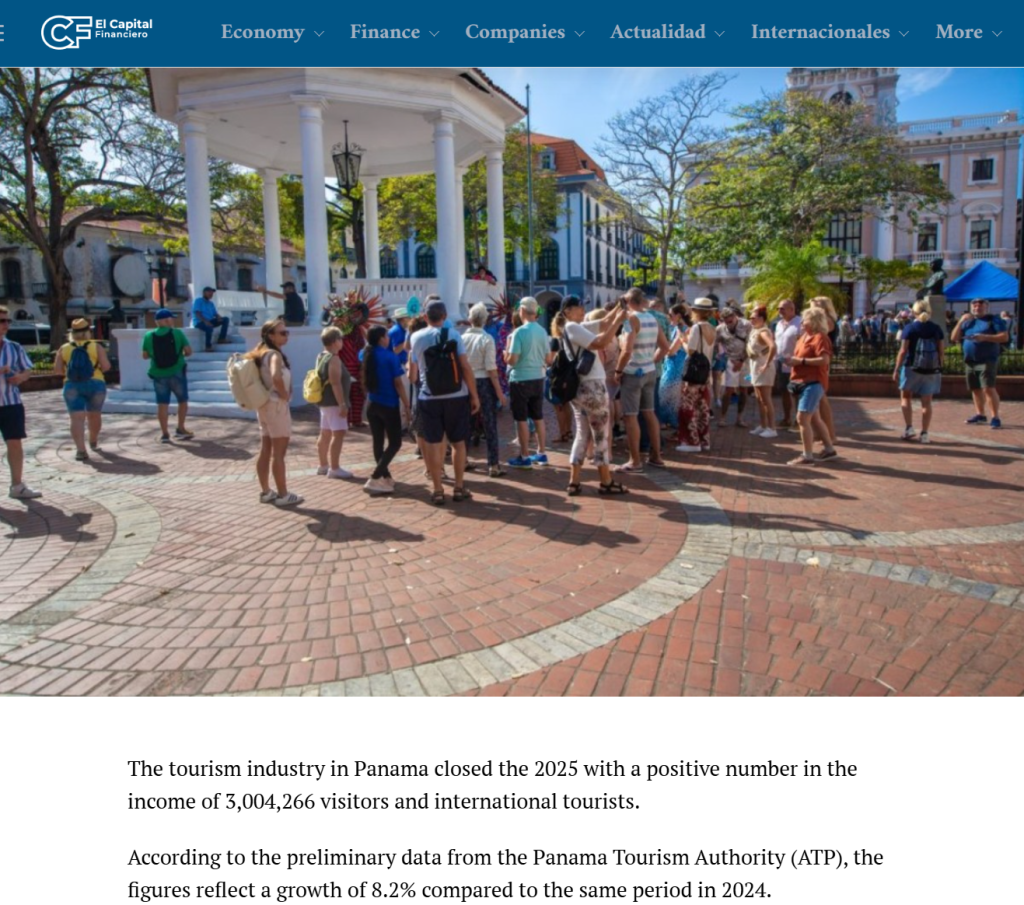 来源:El Capital Financiero官网|Panamá recibió en 2025 uno 3 millones de visitantes, 8.2% más que en 2024,2026/03/06