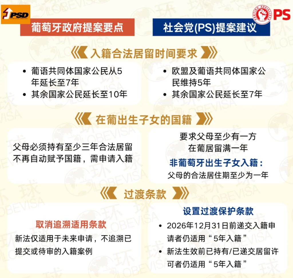 2025 年底,葡萄牙议会曾投票提议将入籍要求的居住年限从 5 年延长至 10 年。