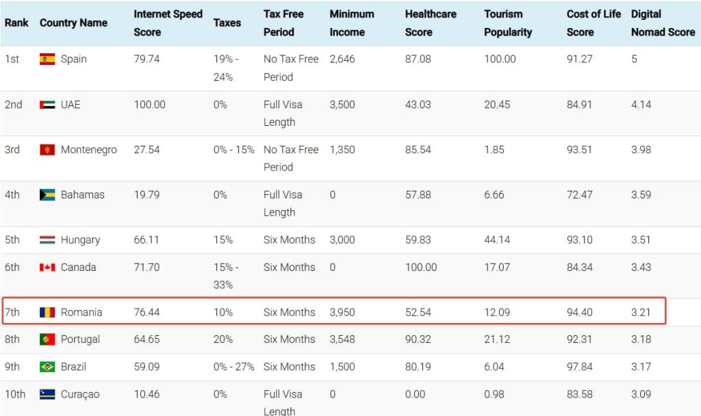根据VisaGuide.World Digital Nomad Visa Index 2025排名,罗马尼亚凭借超低生活成本、欧洲优秀宽带速度及申根自由通行权益,强势跻身全球第7、欧洲第4(仅次于西班牙、黑山、匈牙利),成为全球远程工作者受欢迎的欧洲目的地之一!