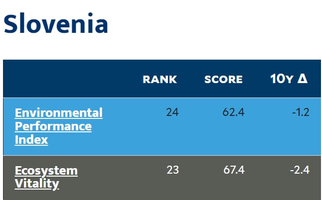 全国森林覆盖率高达61%(高于欧盟整体平均),绿色并非集中于少数自然保护区,而是深度嵌入城市与居民日常生活体系之中。在耶鲁大学发布的2024 年环境绩效指数(EPI)中,斯洛文尼亚位列全球第24位,在空气质量、生物多样性保护与自然资源管理等核心指标上均表现稳定,环保水平处于国际首梯队。
