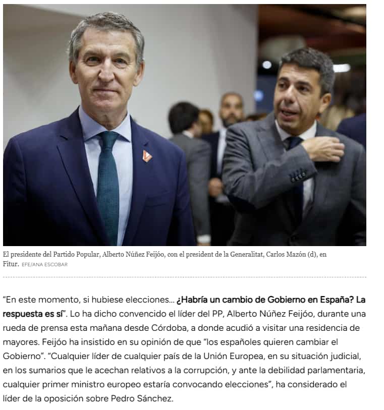 信息来源:https://www.huffingtonpost.es/politica/feijoo-pregunta-habria-cambio-gobierno-espana-hubiese-elecciones-el-responde-si.html?onetap=1&prod=REG&event_log=go