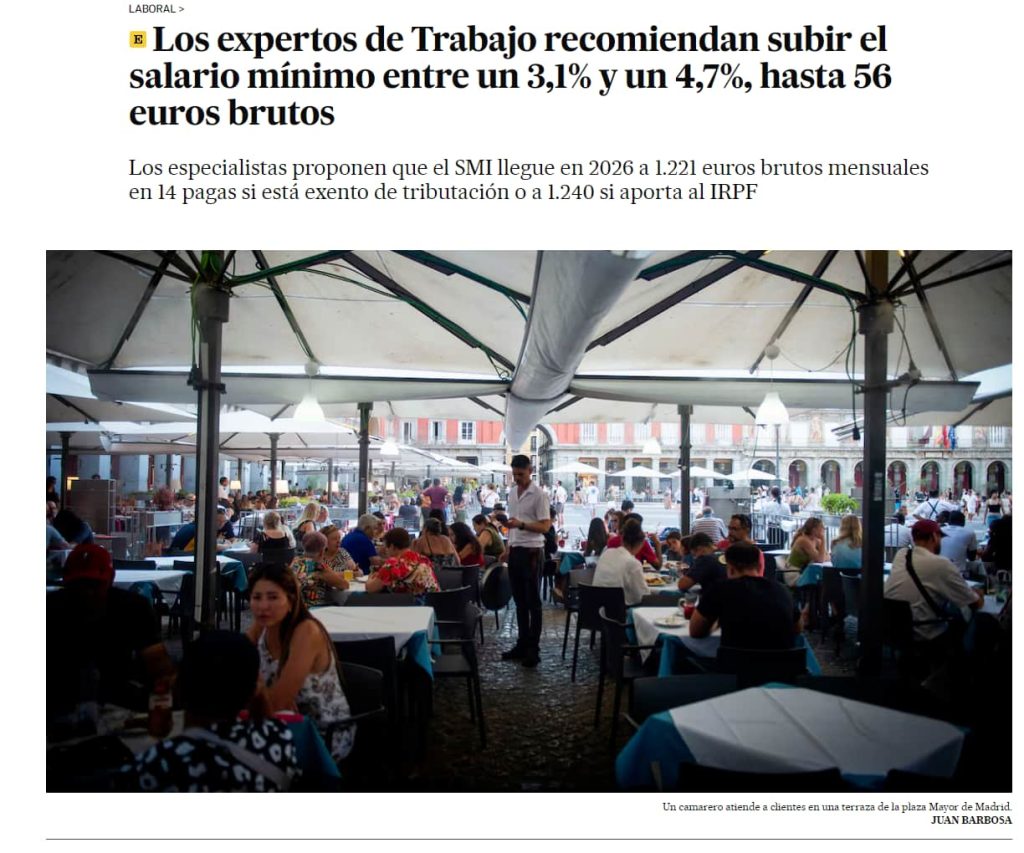 图片来源:https://elpais.com/economia/2025-12-11/los-expertos-de-trabajo-recomiendan-subir-el-salario-minimo-entre-un-31-y-un-47-hasta-56-euros-brutos.html?utm_source=chatgpt.com