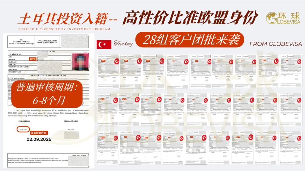 环球移民土耳其项目,凭借稳健的获批率赢得了客户的信任。我们拥有多组团批的成功经验,真实案例为您作证。2025年9月,绝大多数客户的审核周期都在6-8个月之间,审批快速,成功可见!只要您的材料真实,获批是完全可以期待的。选择环球,就是选择一份看得见、摸得着的保障未来。