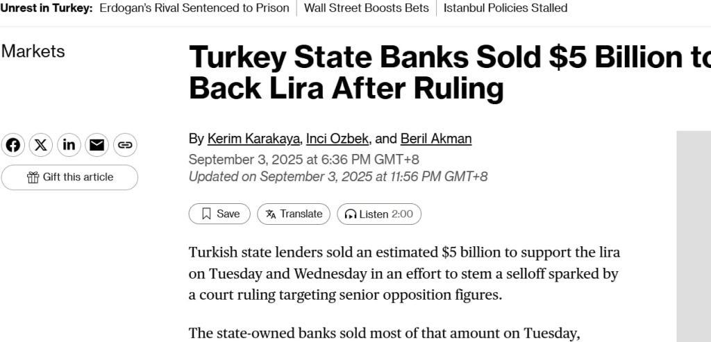 例如土耳其Central银行通过国有商业银行积极干预外汇市场,出售大量外汇储备以稳定里拉的汇率。