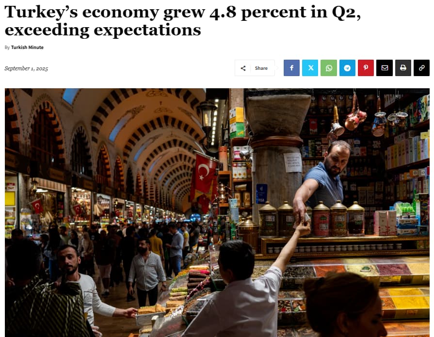 根据土耳其统计局(TurkStat)9月1日发布的数据,2025 年第二季度土耳其经济与去年同期相比增长了 4.8%。