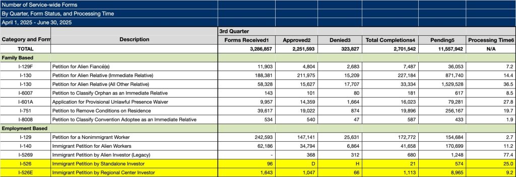 2025年10月8日,美国移民局USCIS更新发布了2025年Q3(2025年3月1日-2025年6月30日)的移民递交与获批数据