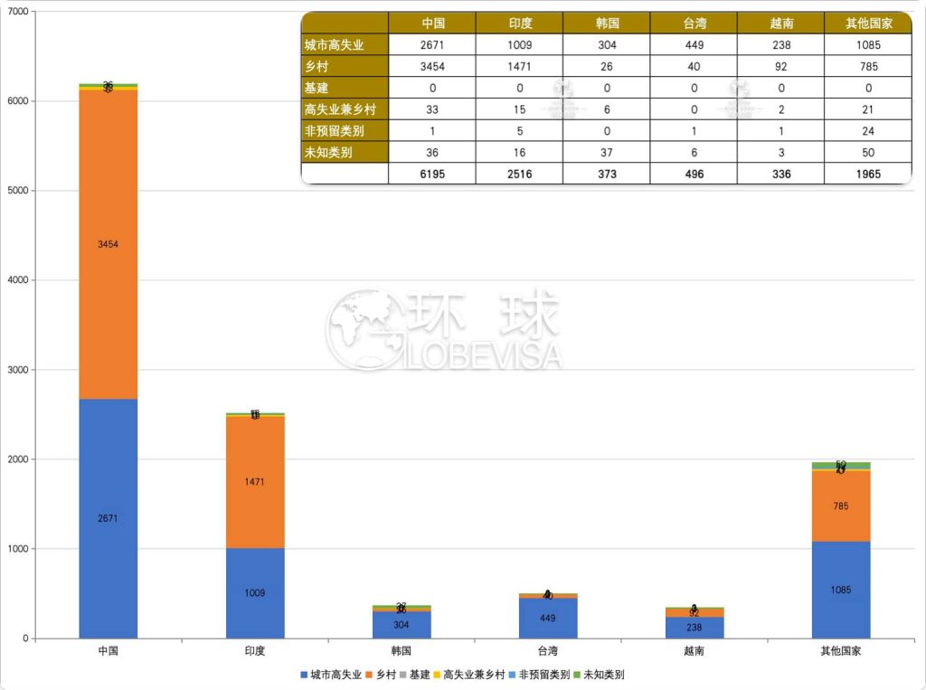 中国EB-5申请人乡村为城市高失业的1.29倍,乡村逐渐为主流类别