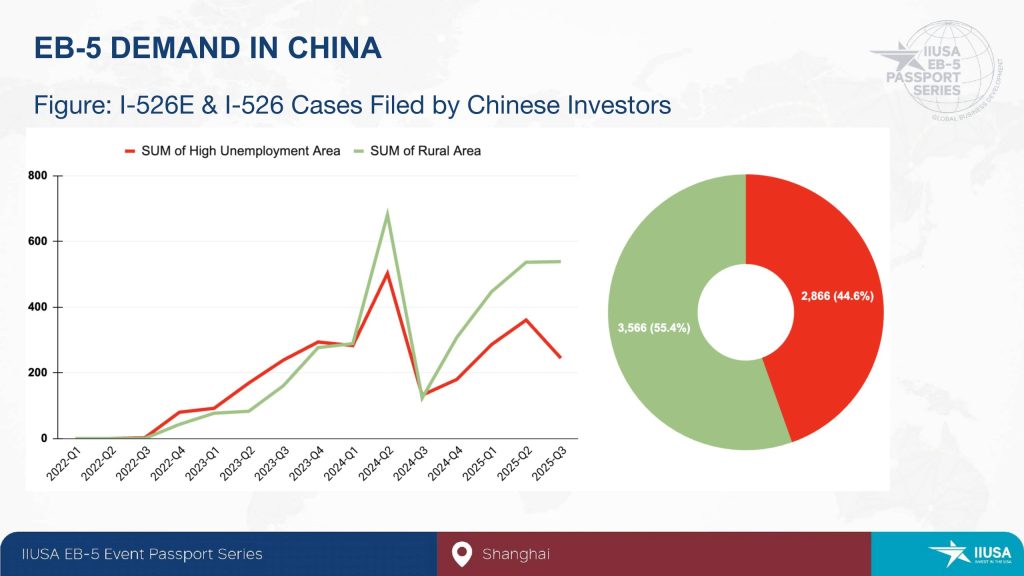 何时排期是每个中国投资者都关心的问题。峰会数据显示,I-526E申请积压量正在快速增长。(更多数据分析:你的绿卡申请快了吗?2025年6月美国移民局实时数据公布!)专家预测,2026财年,EB-5新申请人可能将面临排期。