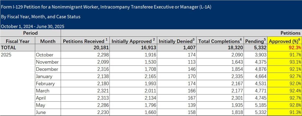 首先来看核心的数字。在已审结的18,320份申请中,有16,913份获得了批准,整体批准率达到了惊人的92.3%。这是一个明确和强有力的积极信号。它清晰地表明,美国对于拥有真实商业背景、能够为美国带来实质投资和高级管理经验的跨国公司高管,依旧持非常开放和欢迎的态度。这为所有符合条件的申请人提供了坚实的信心基础。