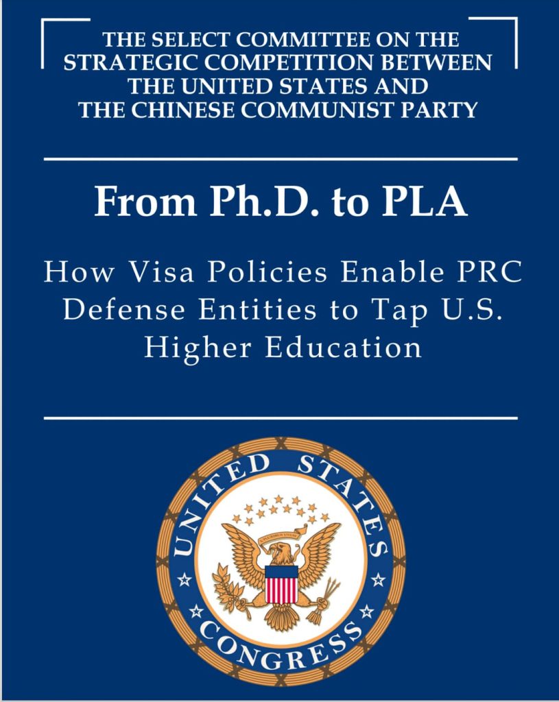 美国国会“美中战略竞争特别委员会”于2025年9月发布了一份题为《From Ph.D. to PLA: How Visa Policies Enable PRC Defense Entities to Tap U.S. Higher Education》的调查报告。
