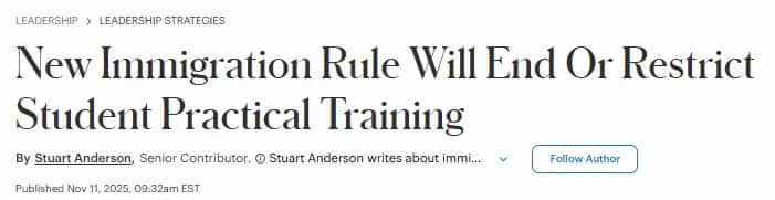 图片来源:https://www.forbes.com/sites/stuartanderson/2025/11/11/new-immigration-rule-will-end-or-restrict-student-practical-training/
