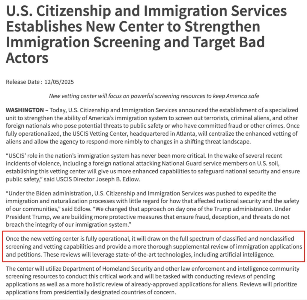 图片来源:https://www.uscis.gov/newsroom/news-releases/us-citizenship-and-immigration-services-establishes-new-center-to-strengthen-immigration-screening