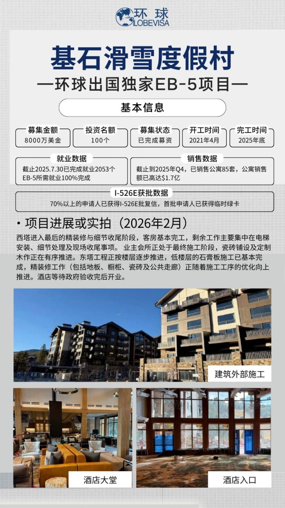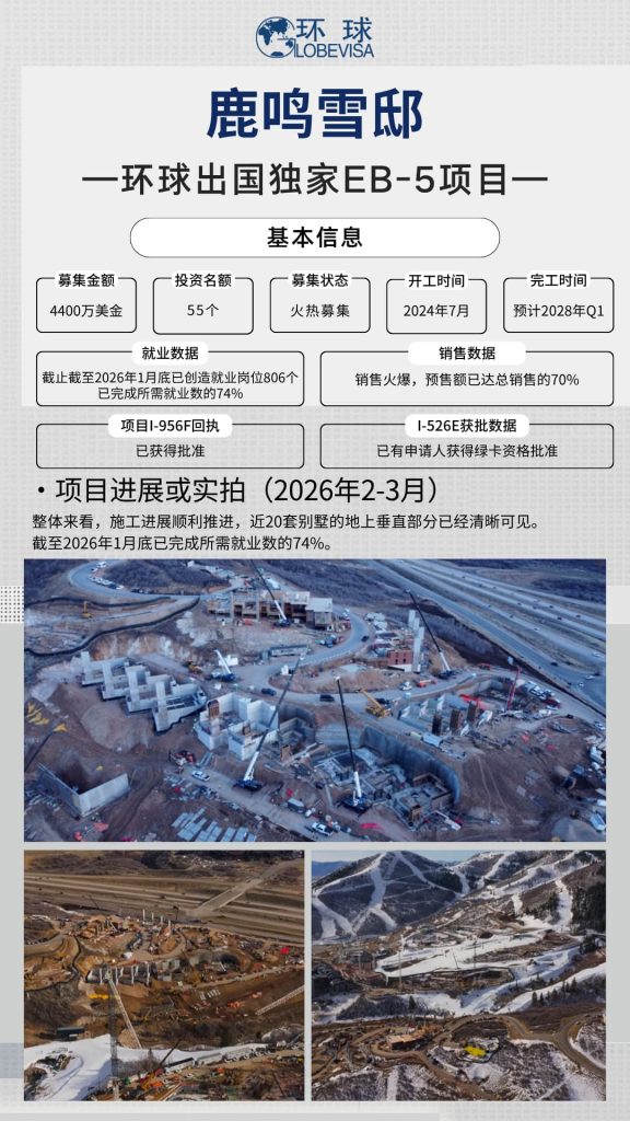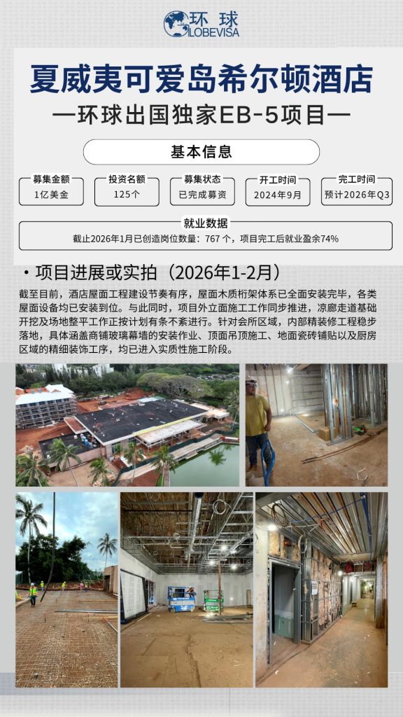 《环球出国云监工》系列,就是为此而生。每月月末,我们会如约更新美国EB-5项目的最新建设与运营动态,通过现场照片、阶段成果,让您无论身在何处,都能“隔空验收”,亲眼见证项目的一砖一瓦。