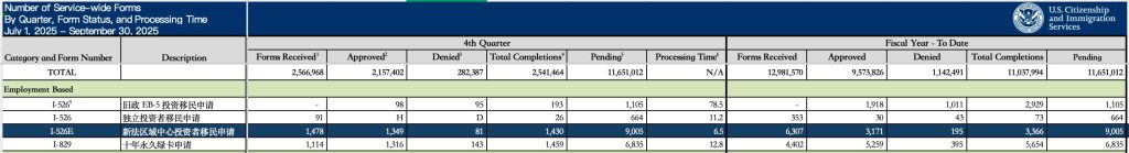 收件量稳定:2025财年第四季度,I-526E收件1,478 份。虽然较前几季度略有下降,但全年总申请量已达6,307 份,市场热度始终维持在高位。